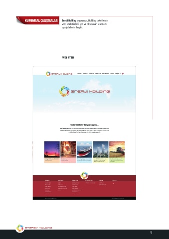 KURUMSAL ÇALIŞMALAR Enerji Holding logosunun, Holding şirketlerinin web sitelerindeki yeri ve ölçüsünün standartı aşağıda belirtilmiştir. WEB SİTESİ 12