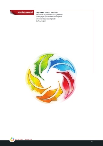 HOLDİNG SEMBOLÜ Enerji Holding sembolü, şirketimizin dinamizmini ve yüksek enerjisini yansıtacak şekilde gerçekleştirilen bir manipülasyonla sektörlerimizi yansıtacak şekilde oluşturulmuştur. 02